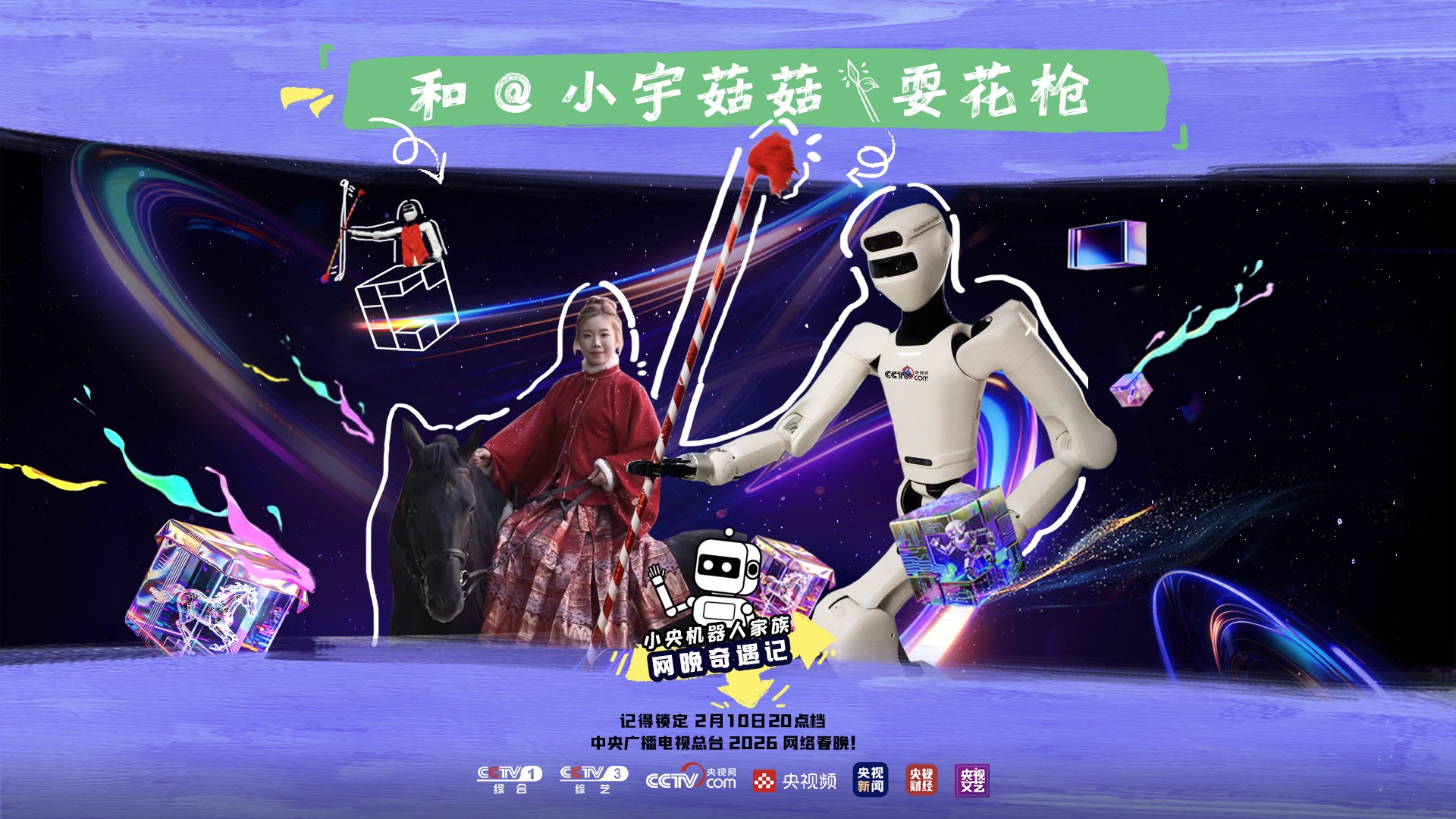 总台网络春晚后台 机器人小央和余小宇一起耍花枪